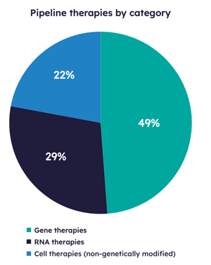 Figure 1. Pipeline of gene, cell, and RNA therapies. (Source: Gene, Cell, & RNA Therapy Landscape Report Q2 2025)