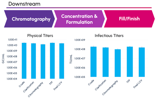Figure 6. Landmark Bio’s scalable downstream workflow for both LVV and AAV (titer data shown is LVV).